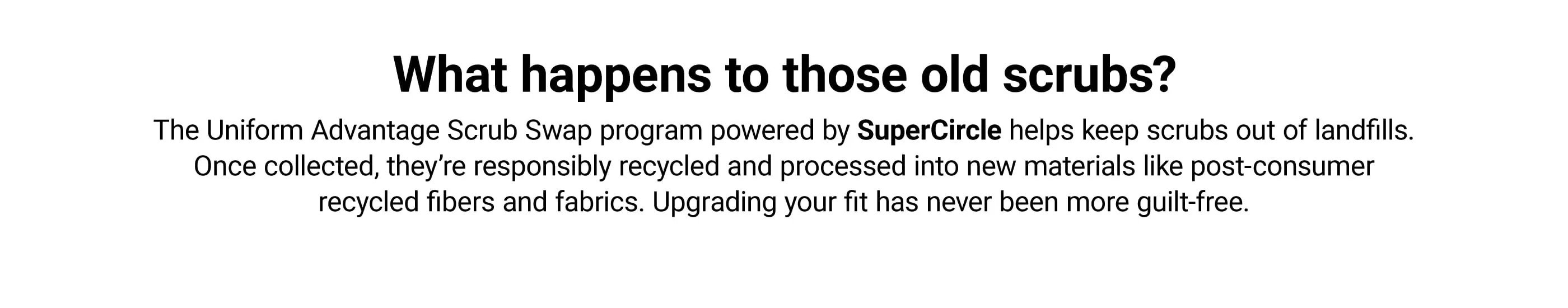 Uniform Advantage partners with SuperCircle to help recycle returned scrubs and keep textiles out of landfills through responsible recycling processes.