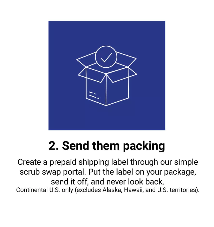 Step 2: Print your prepaid shipping label, and drop off your scrubs at your nearest USPS location within 30 days.